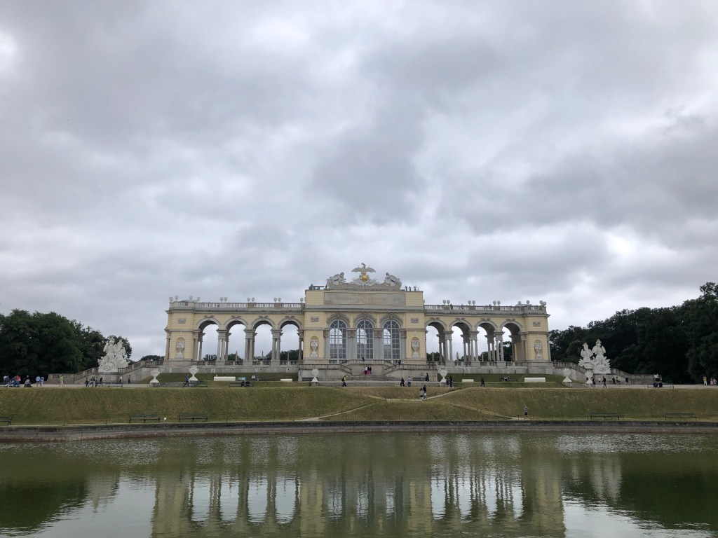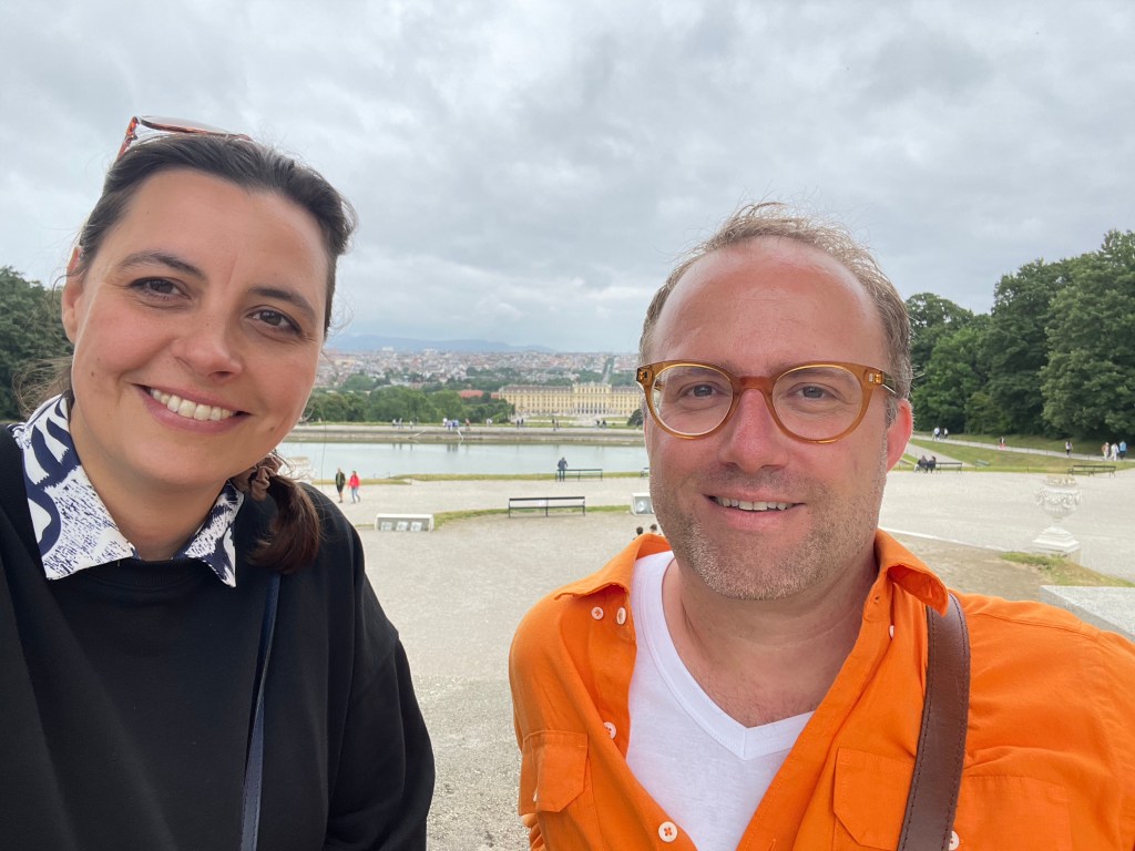 Anne und ich auf der Gloriette im Schlosspark von Schönbrunn. Hinter uns Wien. (24.6.2023)