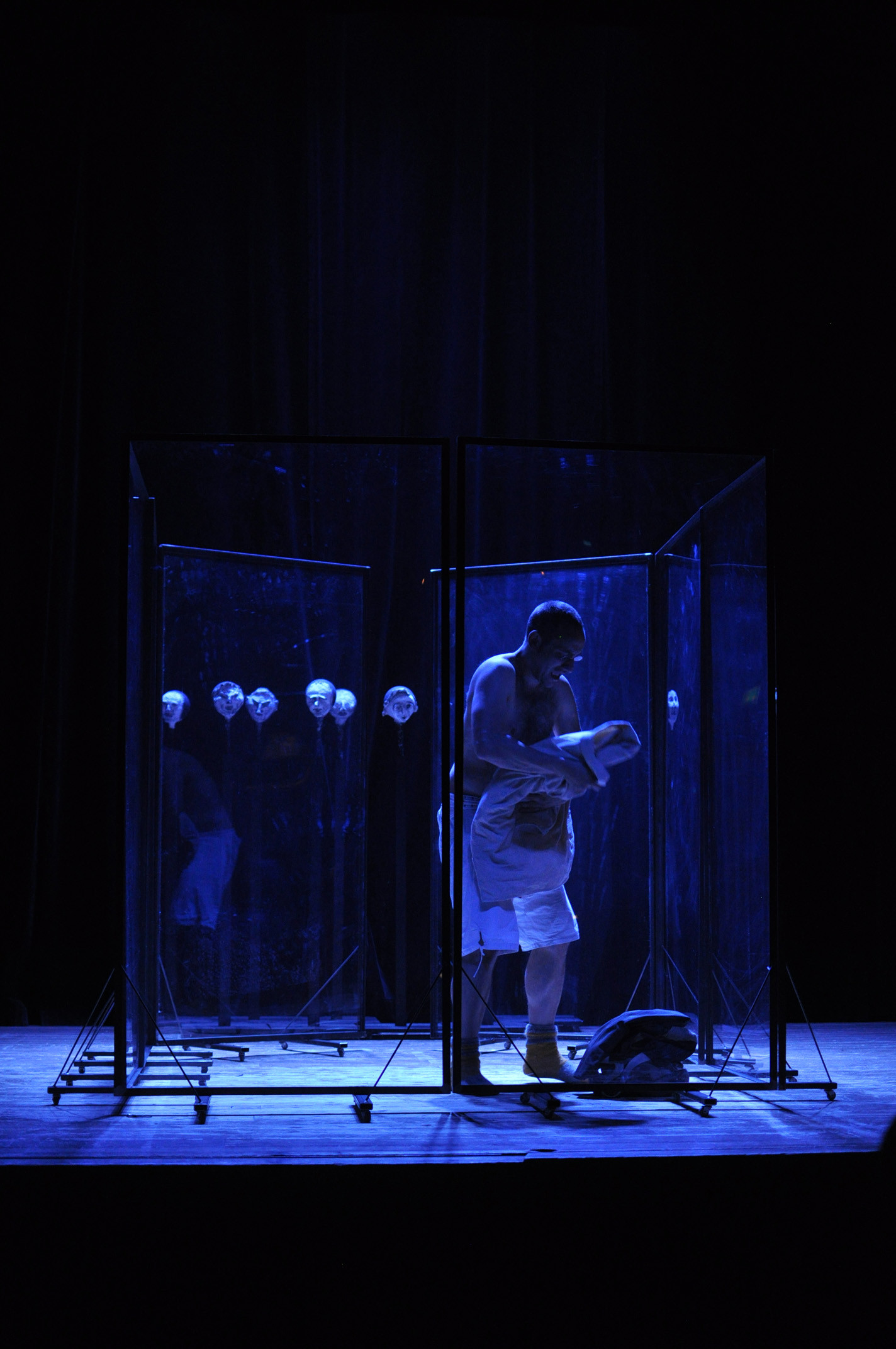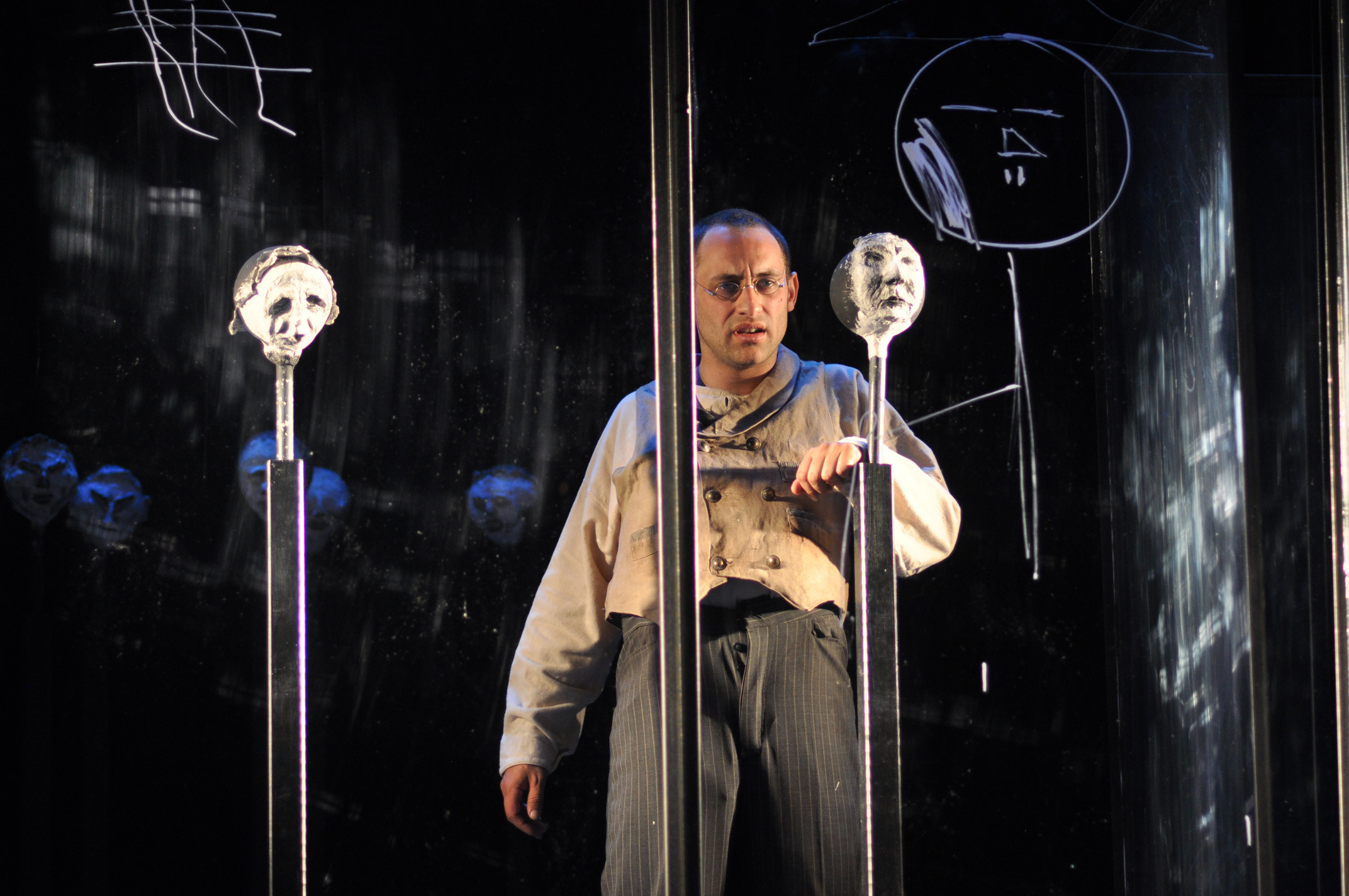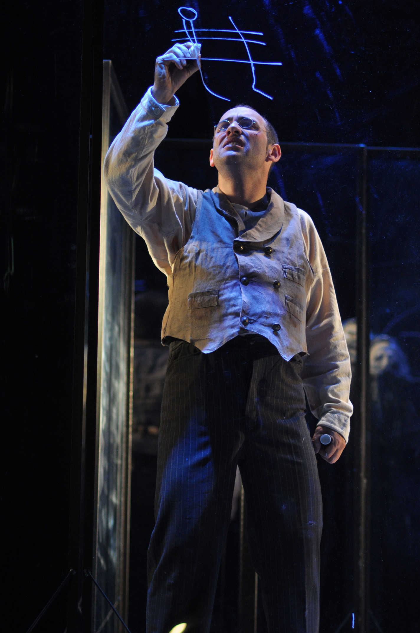 „In einer der anrührendsten Szenen dieser Produktion (…) zeichnet Aßfalg seine eigene kleine Welt auf mehrere gläserne Stellwände: Sonne, Wolken, die Kirchen, Häuser, die Eisenbahnwaggons, die er angeblich für die Reichsbahn zählte, und schließlich besagte Bank, worauf er früher immer saß. (…) Es ist eine der schönsten Ideen der Inszenierung (…) die generell von der gelungenen Kulisse (Bühne und Kostüm: Aylin Kaip) lebt: Die Glaswände, die mal einen transparenten Kubus bilden, oder als durchsichtige Leinwand dienen und unterschiedlich stark illuminiert werden.“
